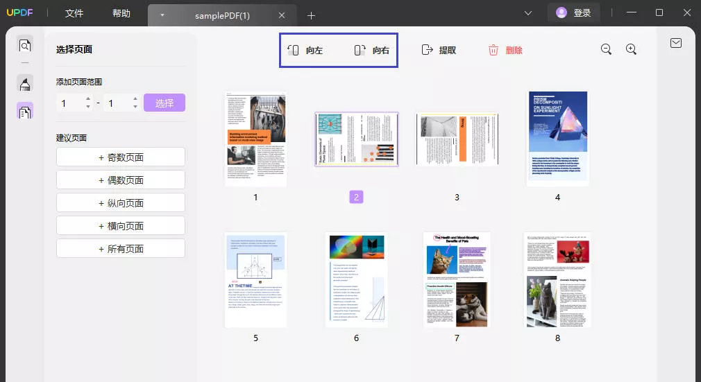 在排版过程中,有时我们可能会遇到页面方向不一致的问题。UPDF的旋转功能可以帮助用户轻松解决这一问题。无论是单页旋转还是批量旋转,用户都可以通过简单的操作实现页面方向的调整。此外,UPDF还提供了裁剪功能,用户可以按需裁剪PDF页面,去除多余的边缘内容,使页面排版更加美观整齐。