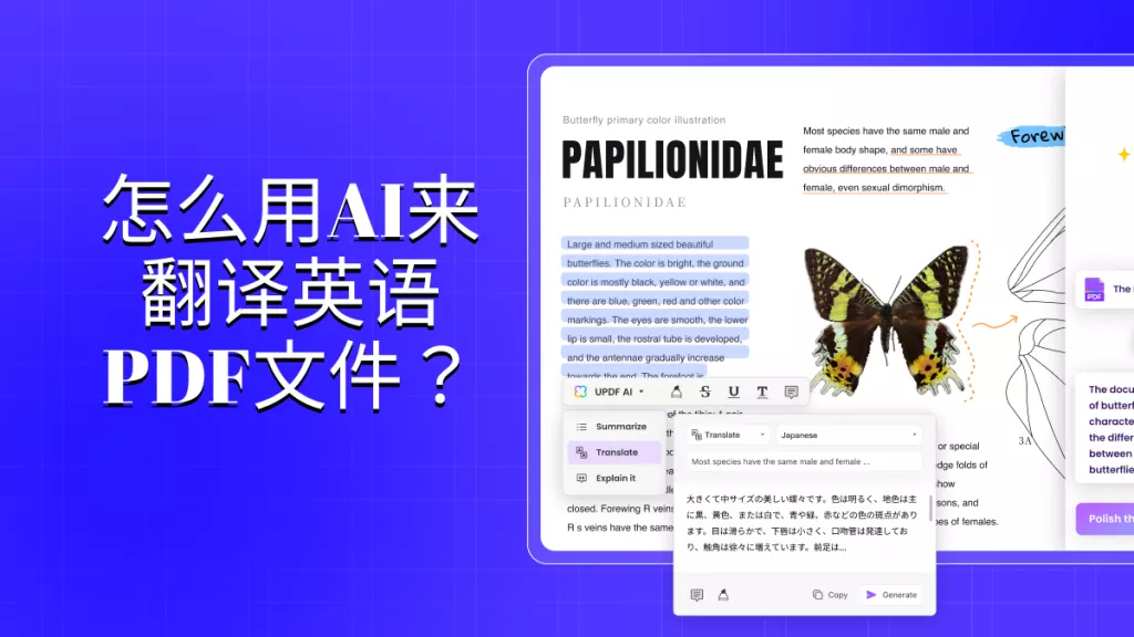 如果您需要快速了解整篇文档内容,UPDF的全文翻译功能是您的最佳帮手。用户仅需上传PDF文件,选择目标语言,系统便会在几秒钟内生成完整的翻译文本,同时保留原始排版。
