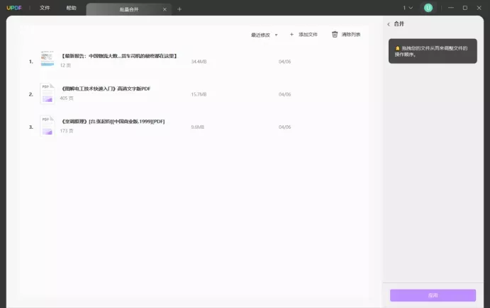 - UPDF:UPDF是一个多功能PDF编辑器,不仅可以编辑PDF文件的内容,还可以合并多个PDF文件。