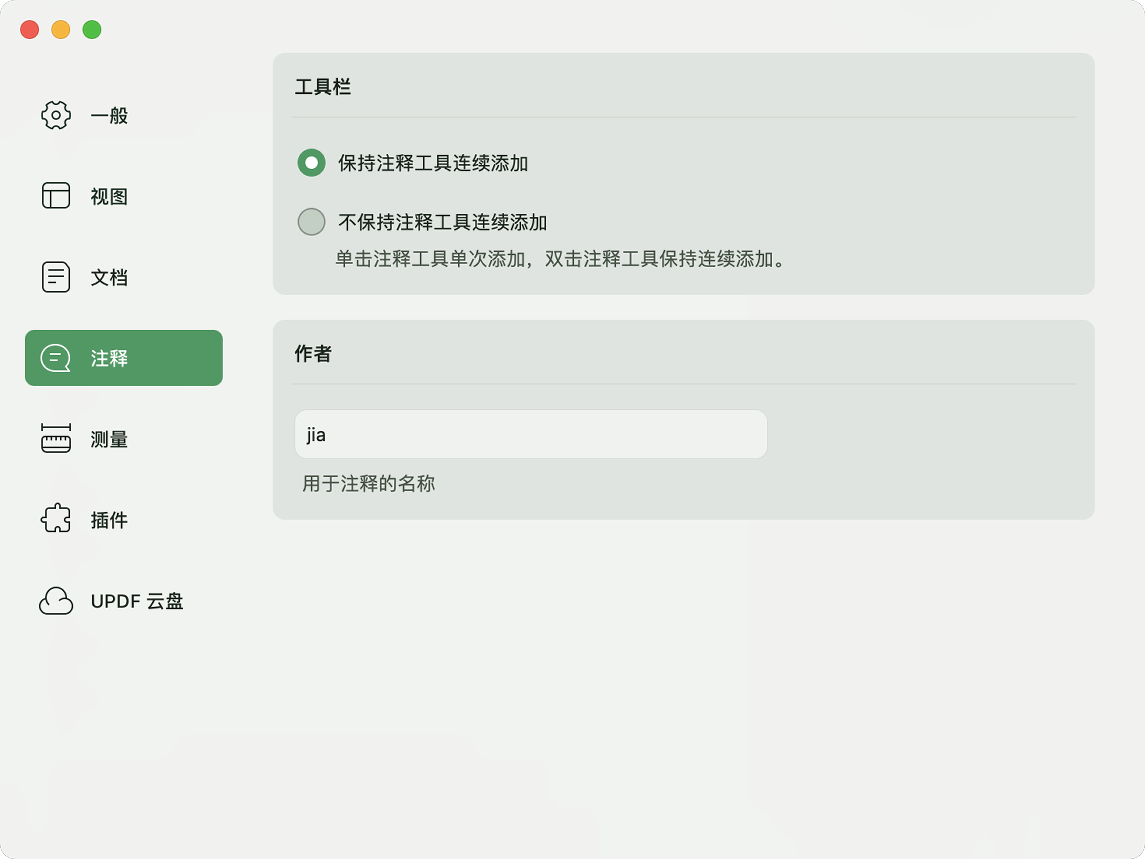 - 保持注释工具连续添加:选择此选项以启用连续添加注释的功能。